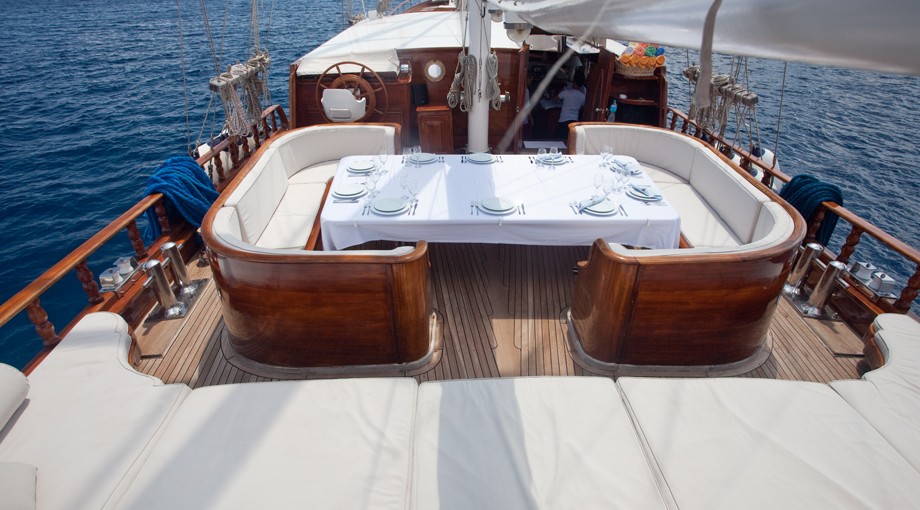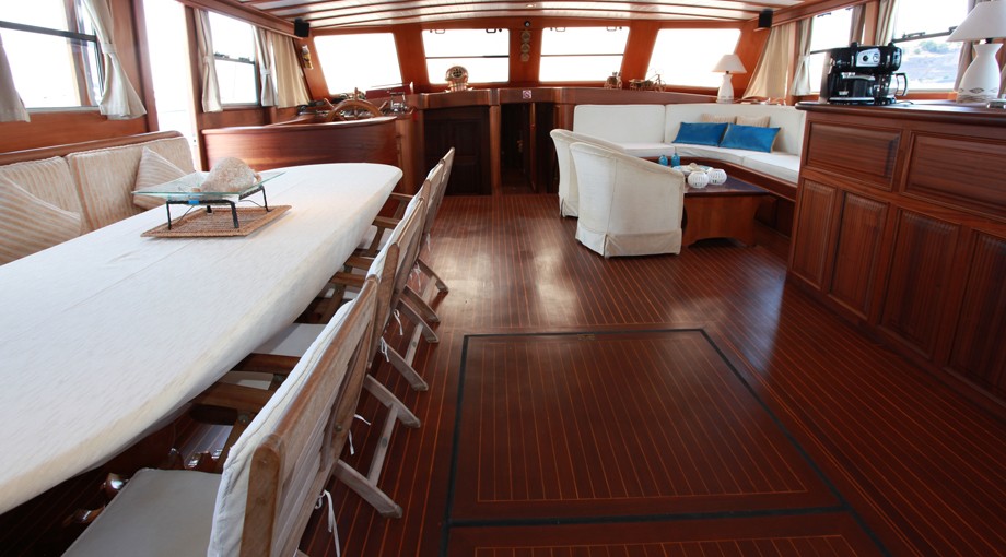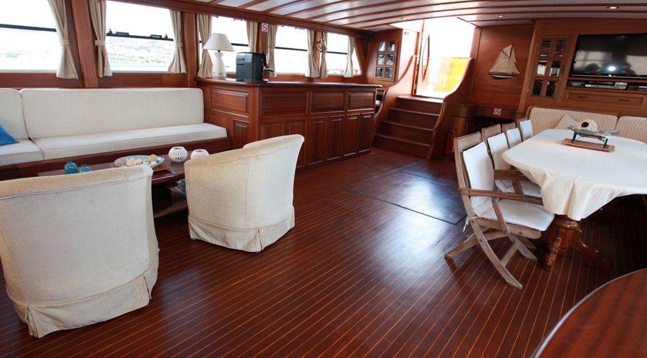 maintained inside and out, this gulet is equivalent to a Superyacht in her class.Mostly guests enjoy the outdoor life, choosing to dine on deck where there are two dining tables with sofas and chairs for lounging.
