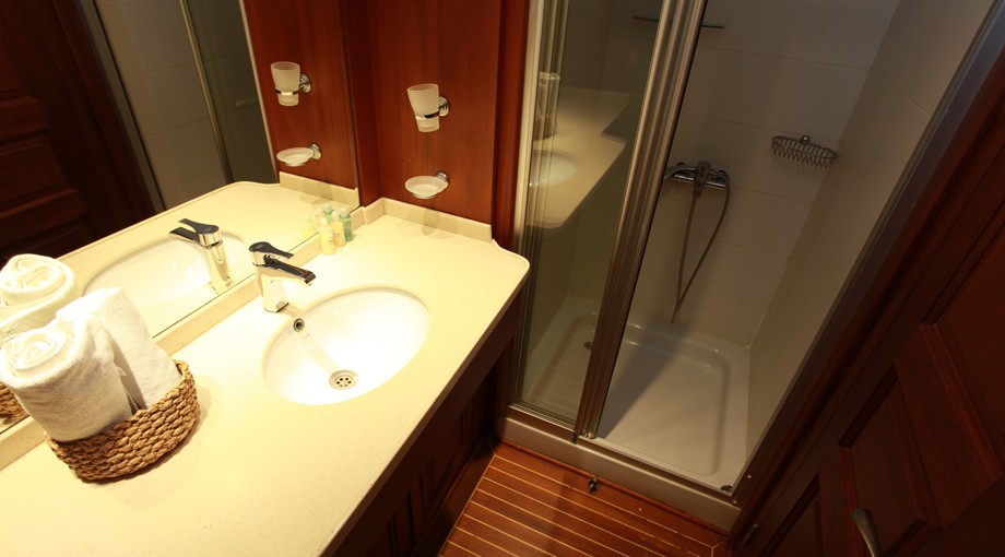 have en-suite shower unit, TV, minibar, DVD system , push flush toilets and individual remote controlled air-conditioning (hot-cold).